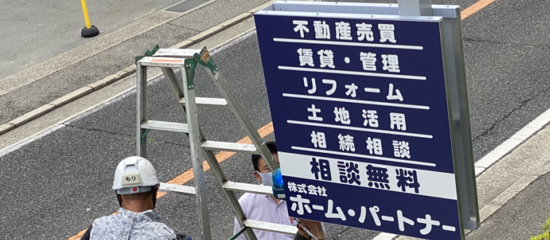 ホーム・パートナーは平成21年11月1日に、現在の事務所に移転してきました。当時、手作りしました看板が老朽化の為、今回は業者さんに依頼しました(^-^)