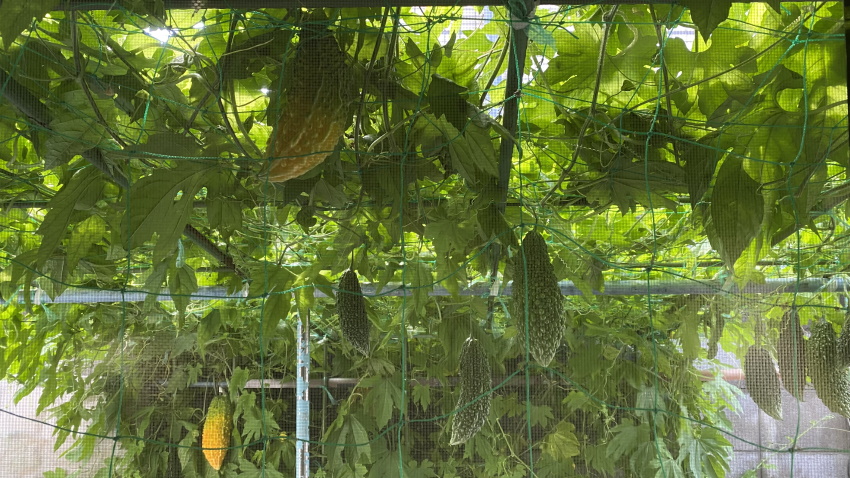 ゴーヤのグリーンカーテンをトンネルのように作ってくれたJJ