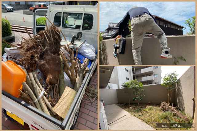 現場毎に雑草の手入れをしていたゴミと貸しテナントの不要キャビネットや古机の処分と。